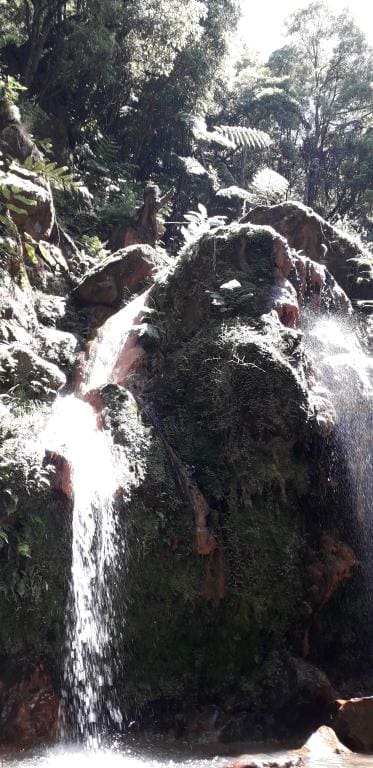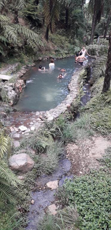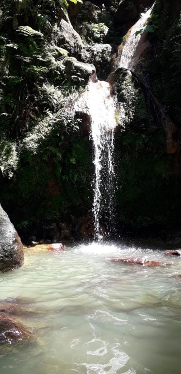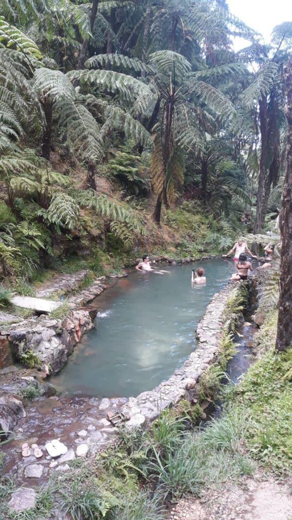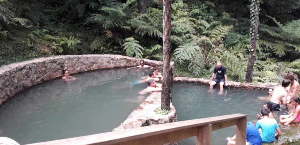 feira a digestão, seguimos para a Caldeira velha, onde chapinhamos em todas as piscinas, quentinhas, que pedem tempo para desfrutar e relaxar. Existem vestiários para trocar de roupa, com cacifos. A chave para estes pede-se no centro de interpretação ambiental, onde se deixa uma caução de 5€ por chave. Para quem quiser existem duches para o final mas a água é fria, e depois das piscinas quentinhas parece ainda mais frio!!!! Não tomamos duche lá porque mais água nos esperava.