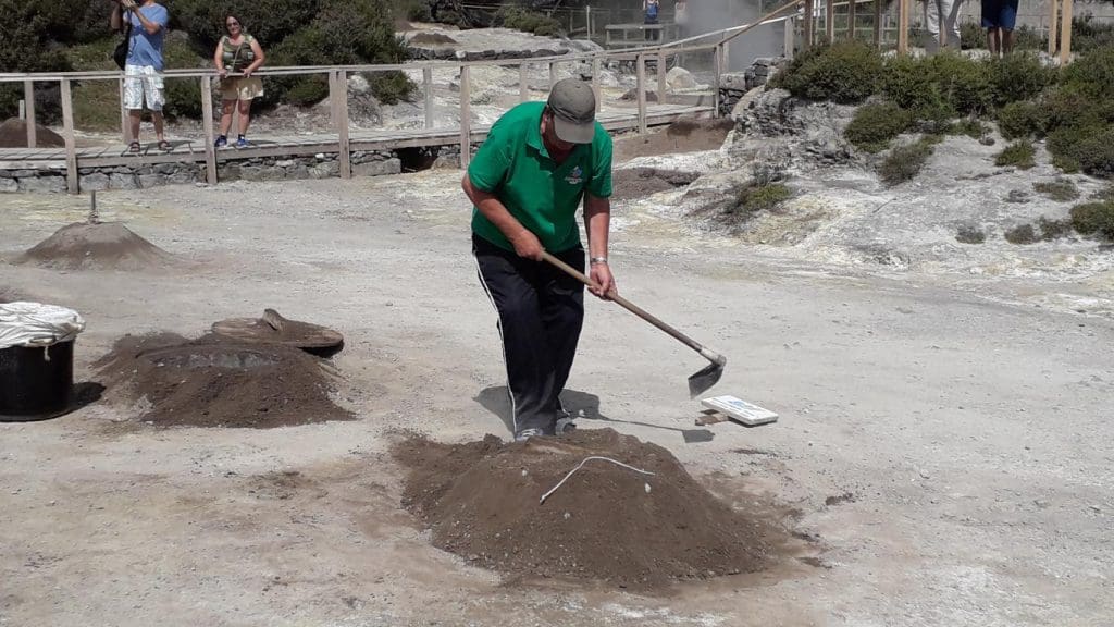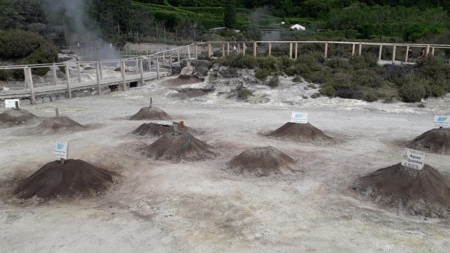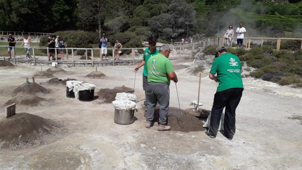 Hoje o dia será dedicado às furnas. A caminho paramos no miradouro da vista do vale. Especificamente dirigimo-nos para a Lagoa das furnas. Sol bonito e esperto, brindou a nossa chegada á lagoa. Linda rodeada de verde. Cerca das 11.15h reunimos junto às caldeiras para assistir á retirada do cozido pelos funcionários municipais que lá se encontram. São eles que colocam e tiram as panelas dos buracos e cobrem com a terra. Leva cerca de 6h e é um bom desafio para os mais corajosos que se queiram aventurar a fazer o seu próprio cozido.