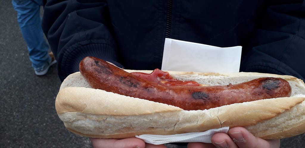 Aproveitamos para passear pelo mercado de natal, comer umas castanhas assadas e um hot dog tamanho gigante!