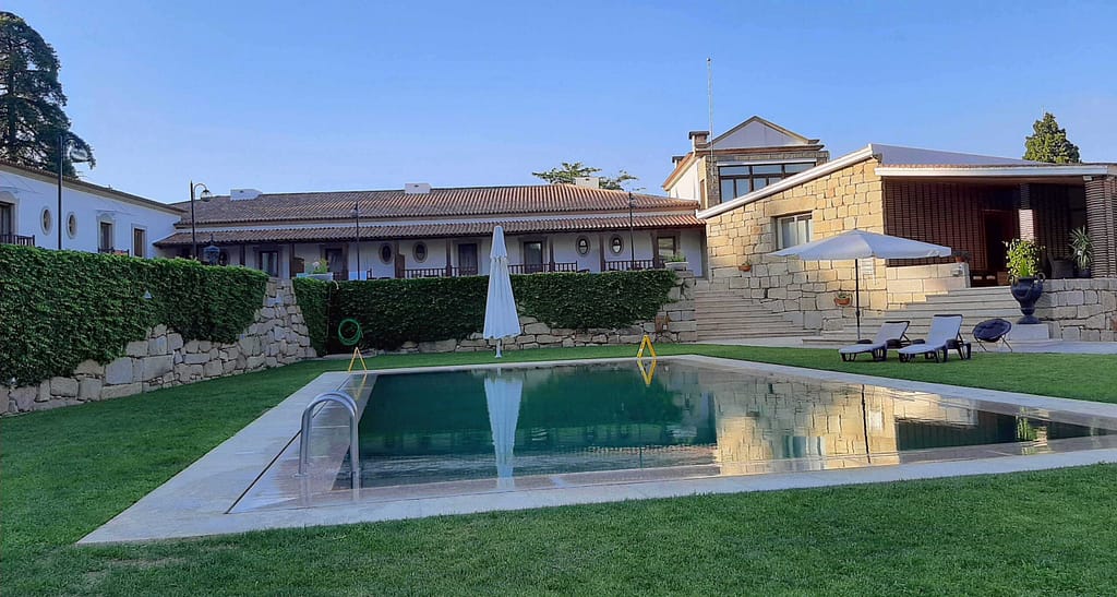 Estamos alojados no Hotel Rural Casa de Samaiões. Uma quinta, com uma mansão restaurada onde pode usufruir de quartos, suítes ou bangalôs. Nós optamos pelos últimos para podermos ficar com os mini Bandeiras.