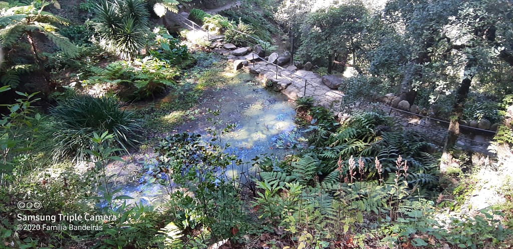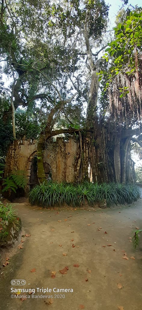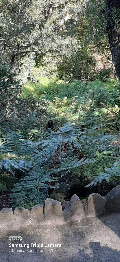 O jardim não é menos importante ou exuberante que o edifício. Uma grande criação romântica o Parque de Monserrate recebeu espécies vindas de todo o mundo, que foram organizadas por áreas geográficas, criando cenários ao longo de caminhos, por entre ruínas, recantos, lagos e cascatas por onde podemos passear livremente, pelo roseiral, o jardim mexicano ou o vale dos fetos! Aqui a pequena Bandeiras muito alegremente disse que parecia que estávamos a passear por uma floresta!
