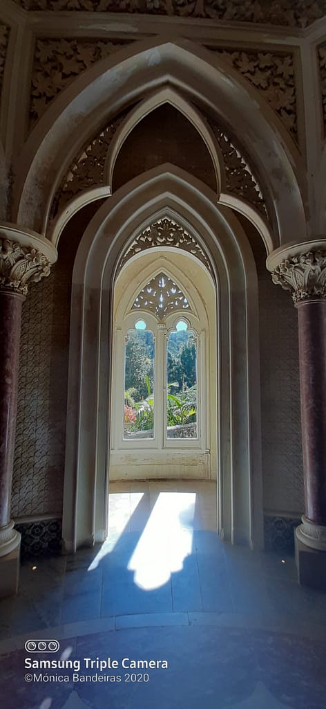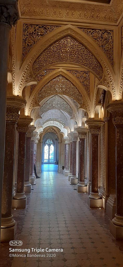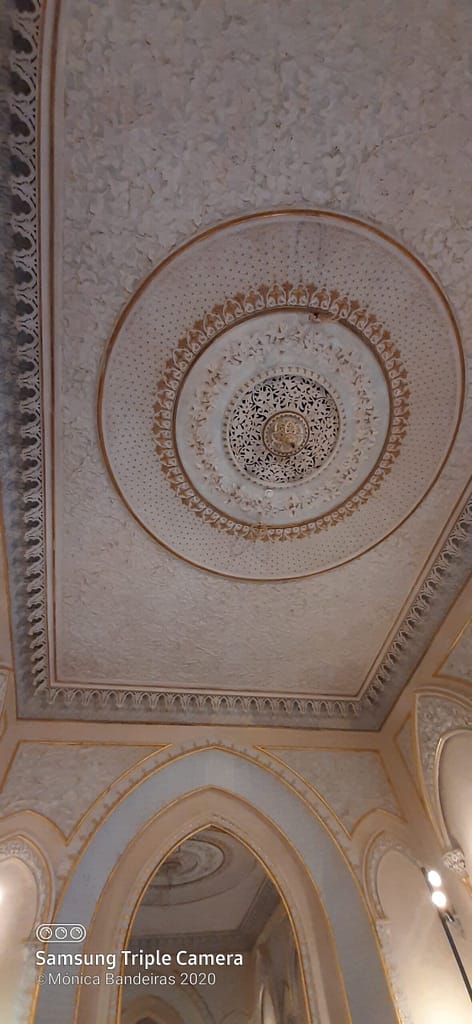 São as combinações maravilhosas que o transformam aos nossos olhos no palácio encantado, aquele onde conseguimos imaginar as histórias das 1001 noites acontecerem a cada esquina, em cada galeria. As paredes, os tetos, as portas a sua própria disposição cheio de detalhes. Os arcos esculpidos que nos fazem lembrar as influências mouriscas induzem o nosso imaginário.