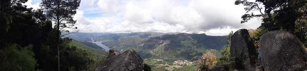 Fotografia tiradas, exclamações feitas lá descemos novamente, com algumas escorregadelas pelo meio, em direção ao Miradouro das Rocas. Fica na sequência da cascata e não necessita de deslocações de carro. Esta sim, uma subida mais difícil até ao cimo do miradouro, cansativa e que exigiu algum esforço físico, mas que permitiu ver as serras quase do alto… estávamos no cume com verde a perder de vista.