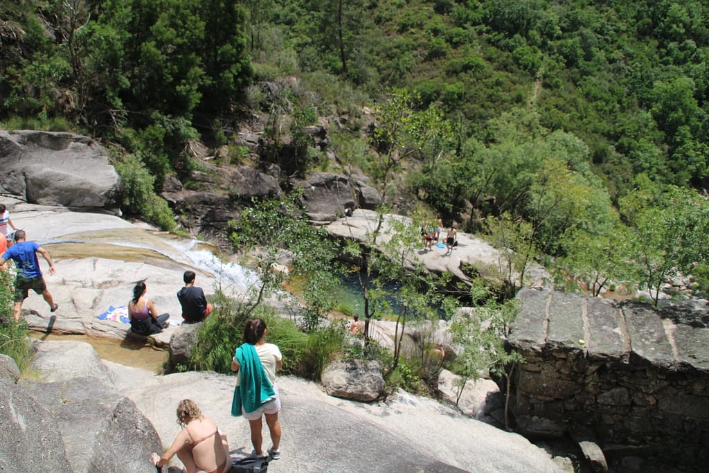 A Cascata de Fecha de Barjas foi a paragem seguinte, um dos locais identificados como zona balnear. Avisos feitos de que é uma zona de acidentes, também está bem identificado mostrando as zonas de circulação e as zonas balneares.