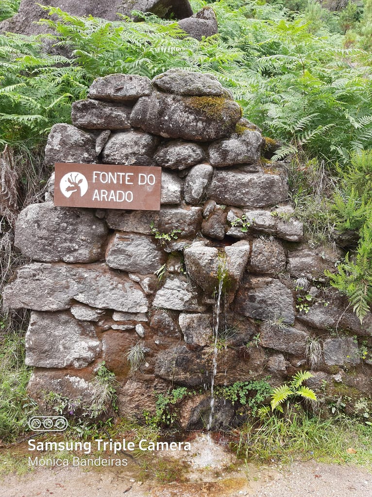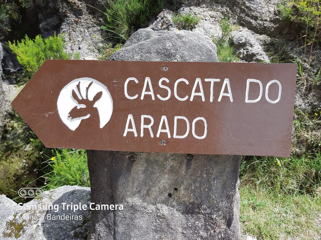 Daqui seguimos para a Cascata do Arado. Caminhando um quilometro por estrada de terra batida, chegamos á pequena subida até á cascata. Dividida por níveis, a água desce livre como uma cortina branca que esconde a serra. Termina em pequenos lagos, que se não fosse saber como são frios bem apetecia lá entrar.
