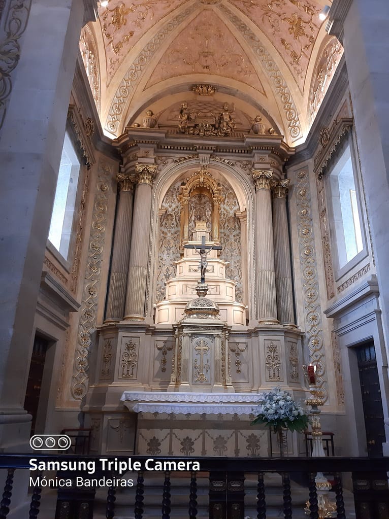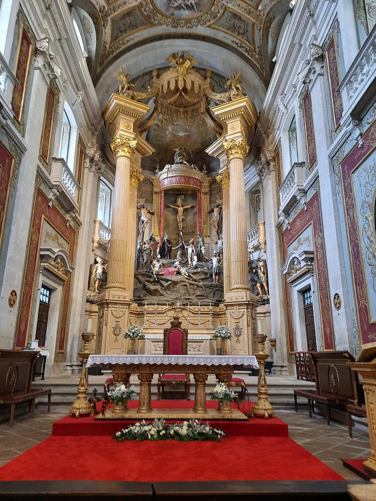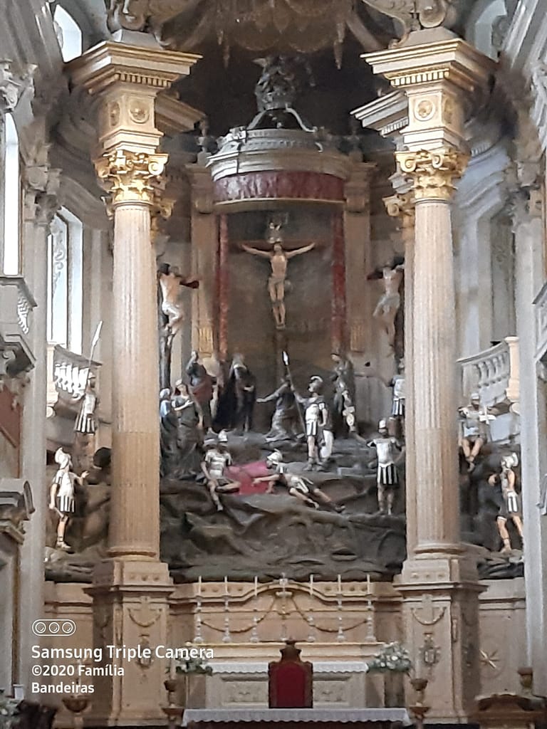 O seu interior está muito bem preservado e é absolutamente maravilhoso. O altar lindíssimo mantem o seu esplendor, dourado, onde se encontra erguido um monte calvário. A imagem de Cristo crucificado foi mandada esculpir em Itália pelo Arcebispo D. Gaspar de Bragança, em 1776. Além desta imagem, mais duas imagens se juntam, do Bom Jesus na Cruz.