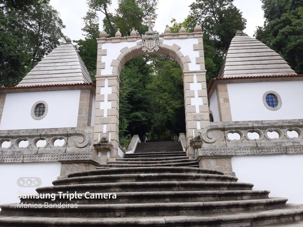Agora e para terminar quero partilhar ainda convosco uma curiosidade. Se ao terminar de subir o escadório parar no terraço e olhar para a restante escadaria do santuário mesmo no centro consegue ver que as figuras centrais dos patamares formam a figura de um cálice. Então, não deixe de visitar esta preciosidade do nosso país.