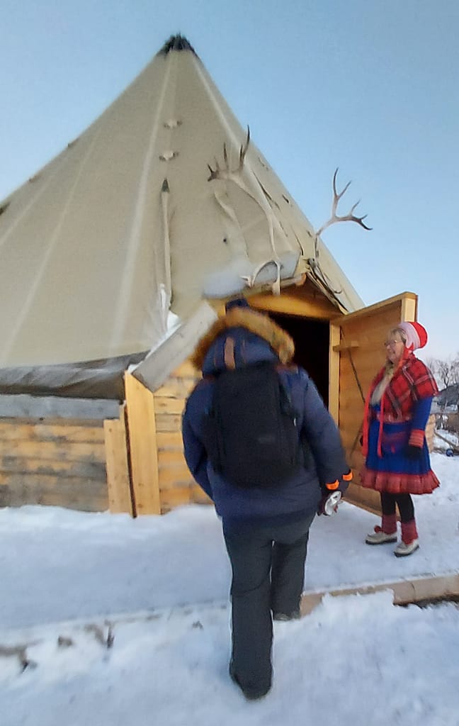 Chegados ao local, fomos recebidos para duas senhoras Sami, vestidas a rigor com lindos vestidos tradicionais, que se apresentaram e nos deram um pequeno breefing de como seria a organização do dia.