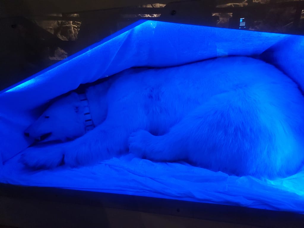A Polaria é o aquário mais a norte do mundo. Não tem grande quantidade de animais, mas estão muito bem cuidados, assim como os tanques a eles destinados. Circulamos por vários corredores que nos permitem aproximarmo-nos dos tanques e assim admirar os animais mas também o fundo dos mares. Um desse corredores passa por debaixo do tanque das focas e podemos vê-las de outra perspectiva. Estas são muito engraçada… Foi talvez o tanque onde passámos mais