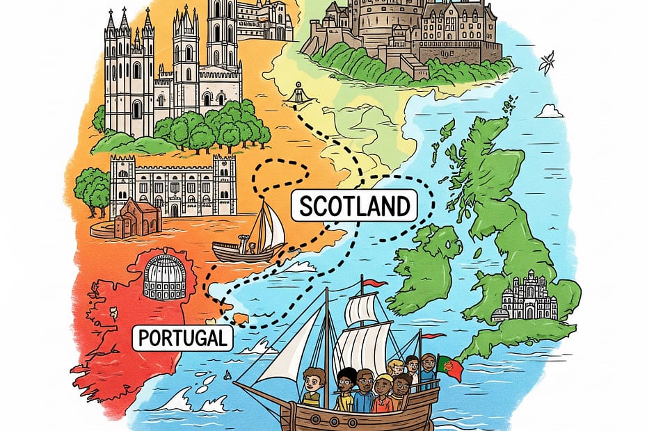 O percurso este ano é um pouco diferente pois não fomos diretamente de Lisboa para Edimburgo, mas fizemos um loop por Portugal.
